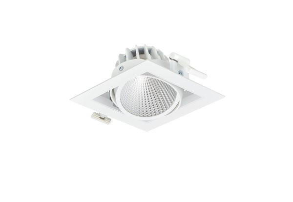 1 spot, C/O 154x154mm, Aluminium, Weiß, Einfache Pulverbeschichtung, Netzgerät extern (Ein/Aus), 3800 lm, 30 W, 127 lm/W, 2700 K, (0.458, 0.410) SDCM 2, Tiefbreitstrahlend (MB), Aluminiumbeschichtet, Klar, Glas, ?IP20 | Fernhalten von Fingern, IK02 | 0,2 J Standard, SchutzklasseII, 2 Steckverbinder, 2-polig