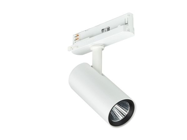 Polykarbonat, Weiß, Netzteil (Ein/Aus), 1200 lm, 10 W, 121 lm/W, 3000 K, (0.434, 0.403) SDCM 3, Stark reflektierender Metallreflektor, engstrahlend, 10 bis 20Grad, ?IP20 | Fernhalten von Fingern, IK02 | 0,2 J Standard, SchutzklasseII, Stromschiene