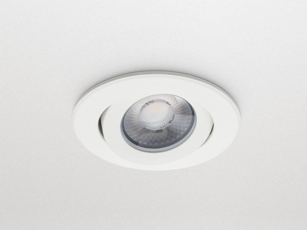 CoreLine Einbaustrahler Gen2, Adjustable, D68 mm, Aluminiumdruckguss, Weiß, Netzteil, externe Regelung, 800 lm, 7.2 W, 110 lm/W, 4000 K, (0.38, 0.38) SDCM 5, Breitstrahlend (WB), Polykarbonat, IP20/44 | Fernhalten von Fingern; Drahtschutz, spritzwassergeschützt, IK03 | 0,3 J, SchutzklasseII, Kabel (0,25m) mit Steckverbinder, 3-polig, Steckverbinder, 3-polig