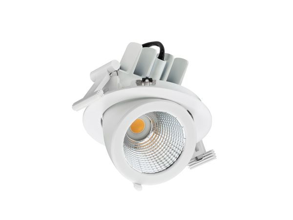 D125 mm, Aluminium, Weiß, Signalweiß (RAL9003), Externer, kabelloser Interact System Ready Treiber, 2850 lm, 23.5 W, 117 lm/W, 3000 K, (0.434,0.403)3, Tiefbreitstrahlend (MB), PerfectAccent-Reflektoren, ?IP20 | Fernhalten von Fingern, IK02 | 0,2 J Standard, SchutzklasseII, 2 Steckverbinder, 2-polig
