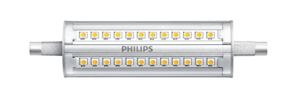 LED Stablampe Philips CorePro LEDlinear R7S, LED Alternative für Hochvolt-Stablampen 100W und , Anschluss an -, Länge , 1600lm, Farbtemperatur 3000K, Leistung 14W, Farbwiedergabeindex CRI80, mittlere Nutzlebensdauer 15000h, Energieeffizienzklasse E, Sockel R7S, , , dimmbar, bitte Kompatibilitätsliste prüfen, photobiologische Sicherheit nach EN 62471 RG1, SDCM<6, Leistungsfaktor 0.8, Schutzart IP20