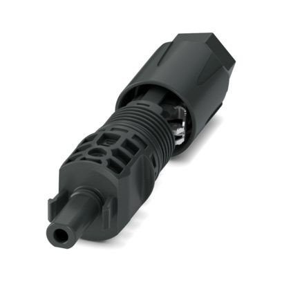 Steckverbinder, Artikelfamilie: SUNCLIX, Farbe: schwarz, Polzahl: 1, Aderquerschnitt min.: 6 mm², Aderquerschnitt max.: 16 mm², Bemessungsspannung: 1500 V DC, Bemessungsstrom: 60 A, Anschlussart: Federkraft, Kabeldurchmesser min.: 5,5 mm, Kabeldurchmesser max.: 10 mm