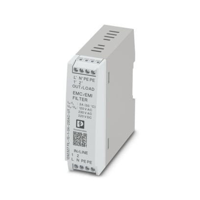 EMV-Filter (Netzfilter) für einphasige AC- und DC-Systeme (Nennspannung: bis 230 V AC, bis 220 V DC), zur Montage auf NS 35, Nennstrom: 3 A