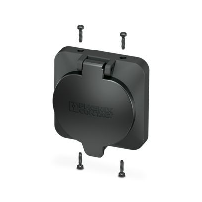 CHARX connect basic, Typ 2, Schutzdeckel, Zubehör, eckig, Vorderwandmontage, Gehäuse: schwarz, mit selbstschließendem Mechanismus, zur Anbringung an Infrastruktur-Ladesteckdosen, Ohne Logo, IEC 62196-2