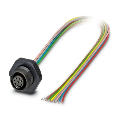 Gerätesteckverbinder Hinterwand, Universal, 8-polig, Buchse, gerade, M12-Standard, A-Kodierung, auf freies Leitungsende, Einzellitzen, Kabellänge: 0,5 m, 0,25 mm², TPE-Litze