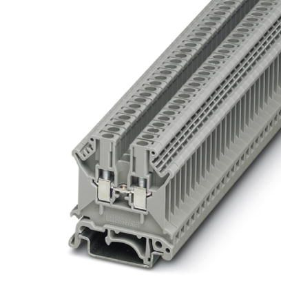 Durchgangsklemmen Durchgangsklemme, Nennspannung: 800 V, Nennstrom: 24 A, Anschlussart: Schraubanschluss, Anzahl der Anschlüsse: 2, Querschnitt: 0,2 mm² - 4 mm², AWG: 24 - 12, Breite: 5,2 mm, Farbe: grau, Montageart: NS 32, NS 35/15, NS 35/7,5