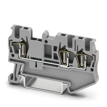 Durchgangsklemme, Nennspannung: 500 V, Nennstrom: 17,5 A, Anzahl der Anschlüsse: 3, Anschlussart: Zugfederanschluss, Bemessungsquerschnitt: 1,5 mm², Querschnitt: 0,08 mm² - 1,5 mm², Montageart: NS 35/7,5, NS 35/15, Farbe: grau