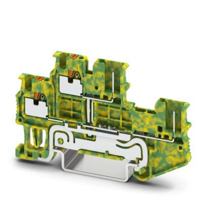 Schutzleiter-Doppelstockklemme, Anzahl der Anschlüsse: 4, Anschlussart: Push-in- / Steckanschluss, 1. und 2. Etage, Querschnitt: 0,14 mm² - 1,5 mm², Montageart: NS 35/7,5, NS 35/15, Farbe: grün/gelb