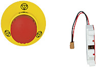 PITestop, Not-Halt-Taster IP65, beleuchtet, mit Not-Halt Symbol und mitLogo und Federkraftklemmen, Einbaudurchmesser 22,3 mm.