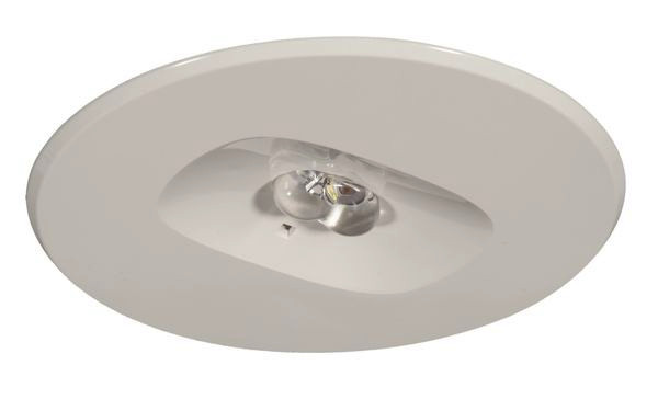Sicherheitsleuchte PLURALUCE, Gehäuse im Flat-Design aus Stahlblech und Abdeckung aus Polycarbonat. High-Power-LED mit Lichtlenkung durch spezielle Linsen für asymmetrisch strahlende Lichtverteilung (Beleuchtung von Wegen mit 1 lx), symmetrisch strahlende Lichtverteilung (Beleuchtung von Flächen mit 0,5 lx) und 1-seitig asymmetrisch strahlende Lichtverteilung (Beleuchtung von Sicherheitseinrichtungen mit 5 lx), Deckeneinbau, runde Abdeckung, für Flächenbeleuchtung, mit 2 wechselbaren Linsen, 361 lm (1 Stunde), 207 lm (3 Stunden), 58 lm (8 Stunden), Batterie Lithium-Titanat, Batterielebensdauer: 10 Jahre, 2 x LTO 7,2 V / 0,5 Ah, Schaltung Dauer und Bereitschaft, 4,85 VA