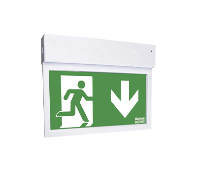 Gehäuse im Flat-Design aus Stahlblech und rahmenloses Display mit integriertem Light-Guide-Panel aus klarem Kunststoff. Homogene Lichtverteilung zur Realisierung einer optimalen Beleuchtung des Rettungszeichens. 1- oder 2-seitige Rettungswegkennzeichnung durch wechselbare Folien. Versionen für Wandanbau, Deckenanbau, Deckeneinbau oder Seilpendel und mit Zubehör für Ausleger.