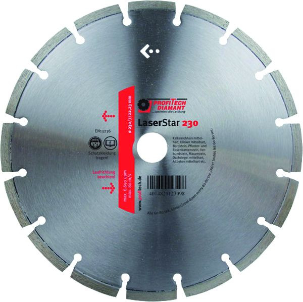 Diamant-Trennscheiben Laser Star, silber, geprüft nach DIN EN 13236 für Wandschlitzfräsen und Winkelschleifer, Trockenschnitt mit Sicherheitsstahlkern und Hochleistungsdiamanten Einsatz : harter Beton, Mauerziegel, Klinker hart, Verbundstein, Vormauerstein,Waschbeton, Kalksandstein hart