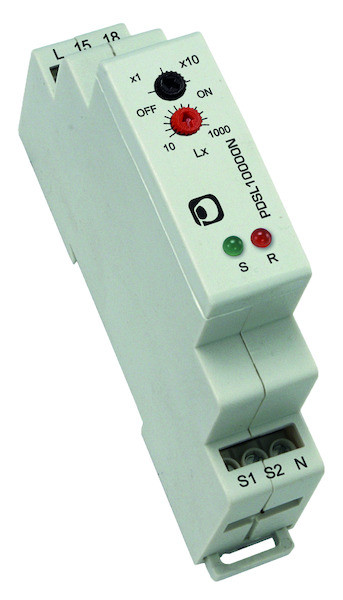 - Dämmerungsschalter für die Montage auf Hutschienen (1 Modul), mit Schraubklemmen undeinem außen liegenden luftdichten Lichtfänger