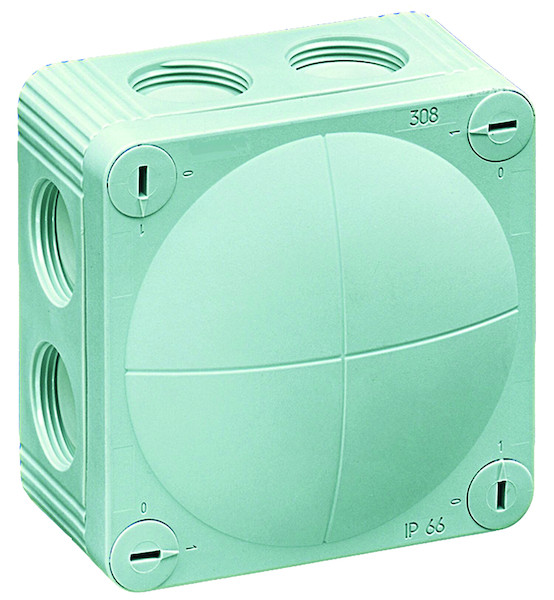 - Befestigungsmöglichkeiten: Durch 4 innenliegende Öffnungen (außer Typ 108 mit 2 innenliegende Öffnungen) außerhalb des Dichtbereiches oder bei Typ 308 und 407 mit Schnellmontagebügel