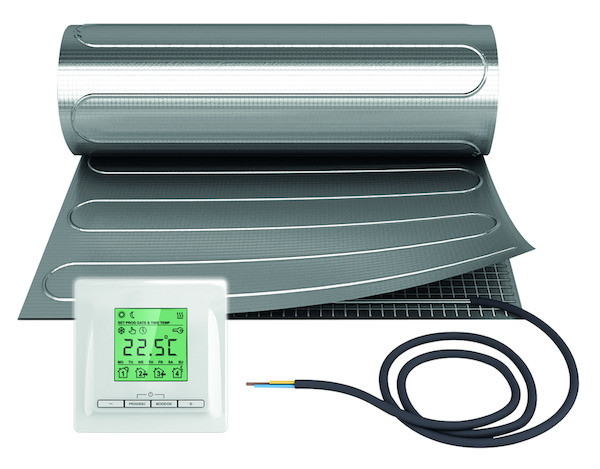 die einen geringen Bodenaufbau benötigen, bestens geeignet. - Die Zweiader-Heizmatte besteht aus zwei Lagen verstärkter Aluminiumfolie, zwischen denen die Heizleiter angebracht sind.