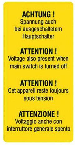 | Ausführung | Achtung! Spannung auch bei ausgeschaltetem Hauptschalter |