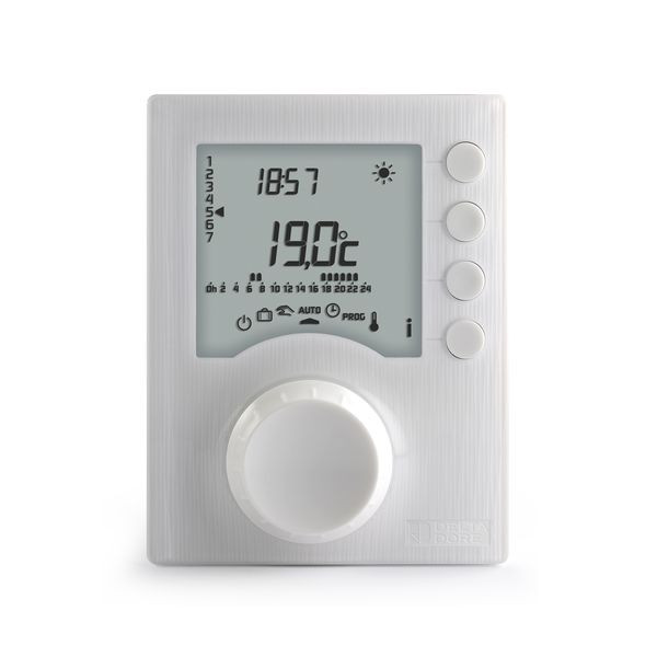 Der Tybox 1117 ist ein programmierbarer Raumtemperaturregler (drahtgebunden) für die wöchentliche/tägliche Heizregelung im Komfort-/Sparbetrieb. Die Spannungsversorgung erfolgt durch 2 LR03 Alkaline-Batterien (im Lieferumfang enthalten). Er hat eine PID-Regelung (proportional, integriert und mit einstellbarer Zeitbasis) oder ON/OFF-Regelung zur Steuerung eines Heizkessels, einer Wärmepumpe oder eines Holzofens. Er hat eine Tages- oder Wochenprogrammierung und die Programmierungsschritte sind in Intervallen von wahlweise einer Viertelstunde, einer halben Stunde oder einer Stunde möglich. Es lassen sich 2 Solltemperaturen (Komfortbetrieb & Absenkbetrieb) einstellen. Diese lassen sich auch jederzeit sperren. Mit der Programmunterbrechungsfunktion senkt sich die Temparatur während einer vorübergehenden Abwesenheit ab. Mit der Urlaubsfunktion schaltet der Tybox 1117 in den Frostschutzmodus um. Der Raumtemperaturregler erinnert Sie auch an die jährliche Wartung des Heizkessels oder der Wärmepumpe. Sie haben dank einer Heizungsregelung ohne abrupte Temperaturschwankungen keinen übermäßigen Verbrauch mehr. Zudem ist der Tybox 1117 durch den Wahlschalter und das beleuchtete Display einfach im Gebrauch. Energieeinsparungen und Komfort in einem! Die Zeitumstellung Sommer/Winter erfolgt automatisch und über den einscannbaren QR-Code haben Sie direkten Zugriff auf die Installationsanleitung.