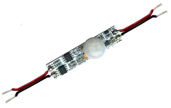 Kompakter Profil-Einbau-Sensor zur Steuerung von 12-24V-LED-Strips, Bewegungsmelder mit 1 Min. AN bei Aktivität, bei 24V bis zu 72W schaltbar.