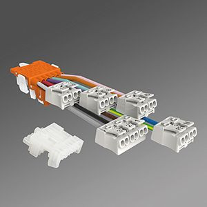 Elektrotechnik-Zubehör Buchse zur Einspeisung 11pol., 5x1,5-2,5mm² + 6x1,5mm², in Steckkontakt-Technik, für flexible und starre Leitungen, für SRT. Gehäusefarbe orange. Einspeiseadapter zum Anschließen von flexibler und starrer Zuleitung 1,5-2,5mm² bzw. 1,5mm², 11-polige Ausführung. Anschlussfertig für die Einspeisung eines Lichtbandes.