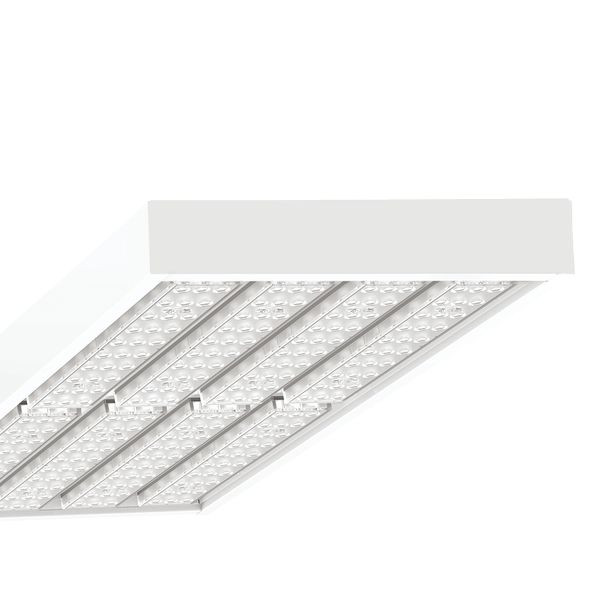 Stahlblechgehäuse pulverlackiert, rechteckiger Querschnitt, mit stabilen Stahlstirnseiten, Gehäuserückseite mit integrierten Einziehmuttern zur Befestigung des Zubehörs für Deckenmontage und Kettenabhängung von außen. Lichtverteilung direkt tief-/breitstrahlend mittels Individual.Lens.Optic aus Kunststoff PMMA. Treiber integriert. Elektrischer Anschluss über 2,3m lange Anschlussleitung 3x1,0mm².
