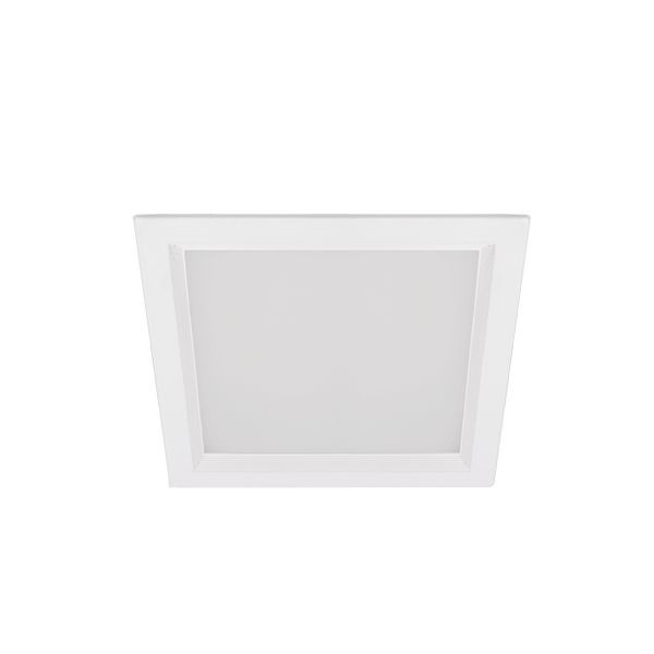 Gehäuse aus Aluminium-Druckguss in Ral 9016 verkehrsweiß lackiert, mit Treiber betriebsfähig verdrahtet, Aluminium-Kühlkörper für effektive Passivkühlung und zurückgesetzter opalen Diffusorscheibe zur Auflockerung der Deckenoptik. Mit Befestigungsfedern für werkzeuglose Montage, geeignet für Deckenstärken von 10mm-20mm. Lichtverteilung direkt breitstrahlend mittels Diffusor opal, mit strukturierter Oberfläche. Integrierter LED Treiber mit Leuchte betriebsfähig verdrahtet. Elektrischer Anschluss über 1,0m lange Anschlussleitung, 2x0,75mm².
