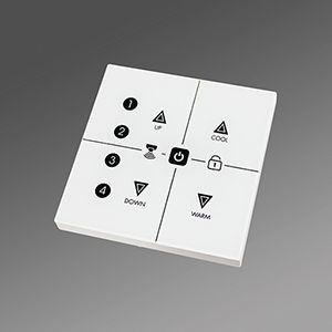 Bluetooth 5.0 Touch Panel. Wand-/Dosenmontage, IP20, Betriebsspannung 220-240VAC 50/60Hz, Tasten für Dimmen auf/ab, Farbe kalt/warm, ein/aus, 4 Szenen, Automatik, Tasten hinterleuchtet, haptisches/akustisches Feedback, einstellbar, integrierte Echtzeituhr, Vernetzbar mit weiteren Bluetooth 5 SIG Mesh Geräten, Konfiguration über Bluetooth per Koolmesh App