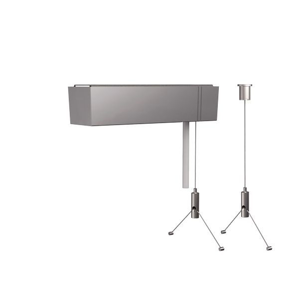 Montage-Zubehör Baldachin rechteckig sg L=160mm, Deckenzylinder metall, 2 Seile D=1,2mm L=1900mm, 2 Querseile L=190mm, Anschlussleitung transparent, für stail SHL. Lichtband. Baldachin rechteckig L=160mm, Deckenzylinder metall, 2 Seile D=1,2mm L=1900mm, 2 Querseile L=190mm, Anschlussleitung transparent, Gehäusefarbe silbergrau/transparent. Y-Seilpendel mit elektrischem Anschluss, für stail SHL. Lichtband.
