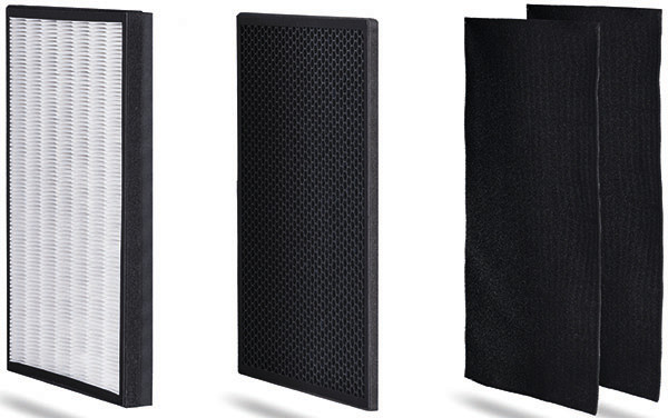 2x Filterschaummatte, 1x Aktivkohlegranulat-Kassette, 1x H13 HEPA-Filter