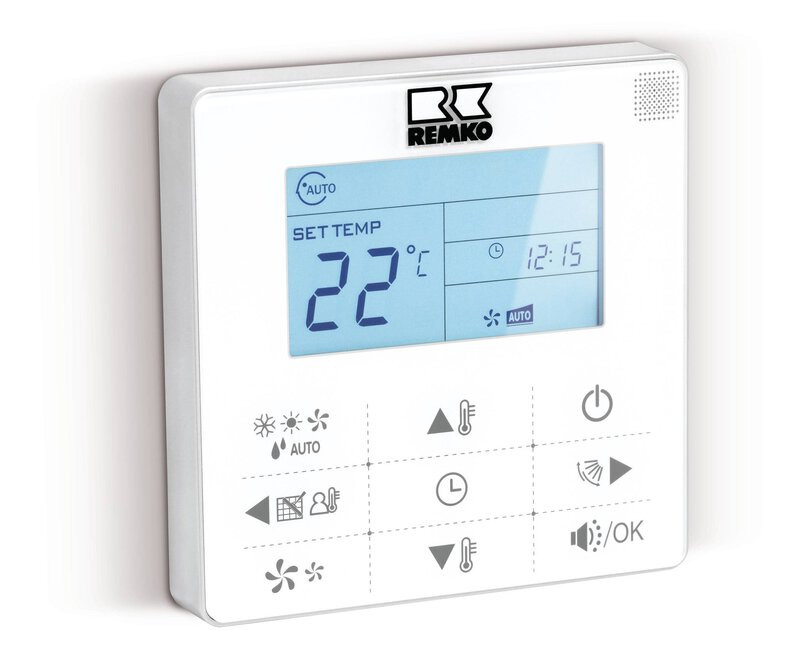 Kabelgebundene Fernbedienung mit Touch-Display zur Ansteuerung von Klimasplit-Innengeräten.