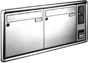 Entspricht der DIN 32617. mit Rundprofil-Putzabdeckrahmen RS 3000 Umlaufender Putzabdeckrahmen rund RS 3000 aus ALU-Profil. Tür und Gehäuse verzinkt, 370 x 330 x 100 mm mit ALU-Klappe, alles pulverbeschichtet. Einwurfschlitz 335 x 33 mm für Format C4 quer. Entspricht der DIN 32617.
