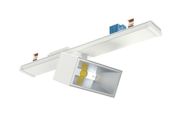 Strahlermodul REY-NX der RIDI LINIA EVO-Produktfamilie. Lichtlenkung durch Reflektor aus , Ausstrahlungscharakteristik symmetrisch, tief-breitstrahlend, Lichtaustritt direkt. Leuchtmittel LED-M eingebaut, Austausch durch Fachkraft möglich. Die Leuchte generiert einen Bemessungslichtstrom von 5150 lm in Lichtfarbe 840, Lichtstrom einstellbar: Nein. Die hohe LED-Lebensdauer von bis zu 95.000 h ermöglicht einen langen Einsatz bei gleichbleibender Beleuchtungsgüte. Hohe Lichtqualität durch eine Farborttoleranz von < 3 SDCM. Aluminium, verkehrsweiß, ähnlich RAL 9016, Schutzart IP20, Zulässige Umgebungstemperatur -20 - 25 °C. Einfaches Einclipsen zur elektrischen Kontaktierung und mechanischen Befestigung im systemgebundenem LINIA EVO Tragschienensystem. Mit elektronischem Betriebsgerät On/Off. Austausch durch Fachkraft möglich. Nennspannung 220 - 240 V AC/DC 50 - 60 Hz.