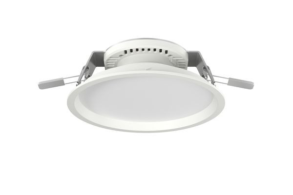 Downlight der EDLR-E2-Produktfamilie. Lichtlenkung durch Abdeckung opal, Ausstrahlungscharakteristik symmetrisch, extrem breitstrahlend, Lichtaustritt direkt. Leuchtmittel LED-M eingebaut, Austausch durch Fachkraft möglich. Die Leuchte generiert einen Bemessungslichtstrom von 3180 lm in Lichtfarbe 840, Lichtstrom einstellbar: stufenlos. Die hohe LED-Lebensdauer ermöglicht einen langen Einsatz bei gleichbleibender Beleuchtungsgüte. Hohe Lichtqualität durch eine Farborttoleranz von < 3 SDCM. Gehäuse aus Kunststoff, verkehrsweiß, ähnlich RAL 9016, Schutzart IP20