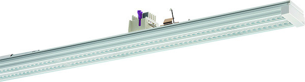 Geräteträger VLGFL der RIDI LINIA-Produktfamilie. Lichtlenkung durch Linse, Ausstrahlungscharakteristik symmetrisch, breitstrahlend, Lichtaustritt direkt. Leuchtmittel LED-M eingebaut, Austausch durch Fachkraft möglich. Die Leuchte generiert einen Bemessungslichtstrom von 14810 lm in Lichtfarbe 840. Die hohe LED-Lebensdauer ermöglicht einen langen Einsatz bei gleichbleibender Beleuchtungsgüte. Hohe Lichtqualität durch eine Farborttoleranz von < 3 SDCM. Gehäuse aus Aluminium, verkehrsweiß, ähnlich RAL 9016, Schutzart IP54. Einfaches Einclipsen zur elektrischen Kontaktierung und mechanischen Befestigung im systemgebundenem LINIA Tragschienensystem. Mit elektronischem Betriebsgerät DALI-2. Austausch durch Fachkraft möglich. Nennspannung 220 - 240 V AC/DC 50 - 60 Hz.