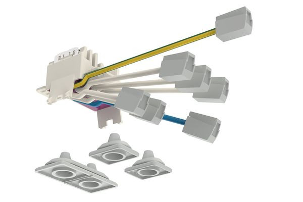 Netzeinspeisteil LINIA EVO für die Stromführung 7-polig, Anschluss für flexible/mehrdrähtige Leitungen, IP20/54, mit ölfesten Kabeltüllen lichtgrau, 1 Stück