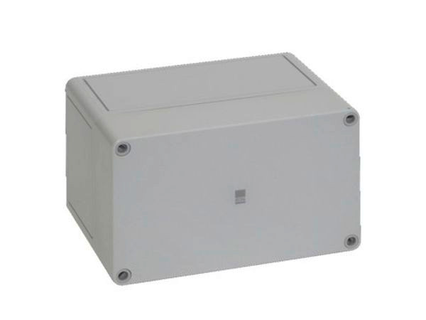 PK Polycarbonat-Gehäuse, BHT: 180x110x111 mm, glasfaserverstärktes Polycarbonat, ohne Vorprägungen, mit Deckel grau