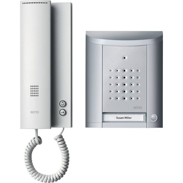 Komplett-Paket mit Preisvorteil. Inhalt -Kompakte Türstation Entravox in silber eloxiert oder weiß lackiert. 1 beleuchtete Klingeltaste und Namensschild. 1 TwinBus Wohntelefon 17630xx weiß. Entravox Netzgerät. Farbe silber/weiß.