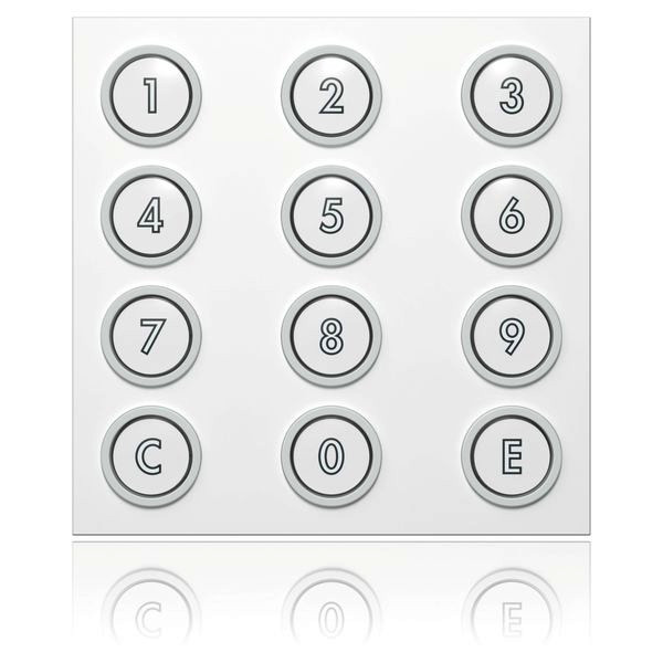 b) Türstationen mit digitaler Anwahl einer variablen Teilnehmerzahl, inkl. Codeschlossfunktion Für modulare Türstationen und Briefkastensysteme. Tasten mit LED-Beleuchtung. Eingabetastatur für Codeschlossfunktion Türöffnen per Zahlencode mit bis zu 6-stelliger Codenummer. Eingabetastatur für digitale Anwahl von Teilnehmern Adressierung von bis zu 4-stelligen Rufnummern. Stand-alone-Betrieb mit Netzgerät möglich. Zubehör Stand-alone Betrieb mit Netzgerät 17573xx Farbe weiß.