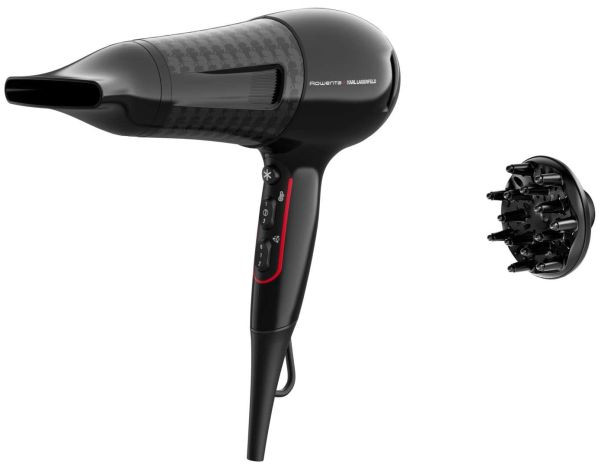 DC-Motor, 3 Temperaturen/2 Geschwindigkeiten, echte Kaltstufe, Effiwatt-Technologie mit der Effizienz von 2300W, Ionengenerator, um die statische Aufladung und Frizz für glattes Haar zu reduzieren, 12 mm-Stylingdüse, Volumen-Diffusor, abnehmbares Lufteinzugsgitter, Öse zum Aufhängen, minimalistisches Design mit stylishem Touch von KARL LARGERFELD