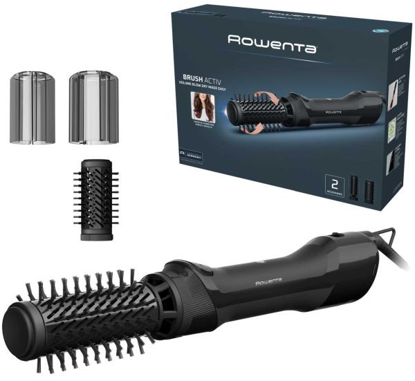 rotierend, automatisches Aufrollen des Haares, Rechts-/Linkslauf, Bürstenaufsätze (40 und 50 mm ø) mit Keramikbeschichtung reduziert statische Aufladung und Frizz, 2 Geschwindigkeits-/Temperatureinstellung, 2 Schutzhüllen für die Bürsten