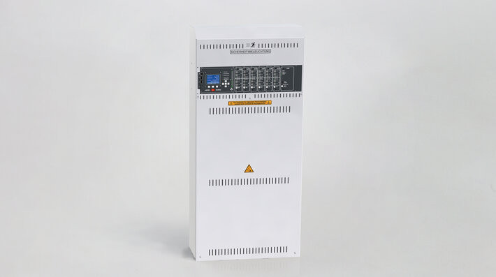 Die Systeme der miniControl plus sind batteriegestützte zentrale Stromversorgungssysteme nach DIN EN 50171, die zur Versorgung und Überwachung von Rettungs- und Sicherheitsleuchten konzipiert sind. Bis zu 12 Stk. Stromkreise pro System ermöglichen die Versorgung und zusatzleitungslose Überwachung von bis zu 240 Leuchten in Mischbetriebstechnik.Eine Anzeige- und Bedieneinheit, bestehend aus LC-Display, Tastenfeld und Status LEDs, gibt Information über den aktuellen Systemzustand und ermöglicht Konfigurationen direkt am System.Optional ist ein Touchdisplay lieferbar.Das Prüfbuch erfasst und speichert Daten über einen Zeitraum >5 Jahre. Über ein integriertes (patentiertes) Web-Interface lassen sich alle Systeme visualisieren und konfigurieren.Die Anbindung von weiteren Systemen im Primär/Sekundär-Betrieb bietet die Möglichkeit zur Erweiterung des Systems sowie der Anpassung an individuelle Anforderungen, wie z.B. Installationsaufwand.miniControl plusmax. 12 Stk. Stromkreise, 1300 W/1h, max. 240 LeuchtenDie miniControl plus ist ein zentrales Stromversorgungssystem mit begrenzter Leistung nach DIN EN 50171 (Low Power System) bis maximal 1300 W/1h und servicefreundlicher modularer Einschubtechnik.