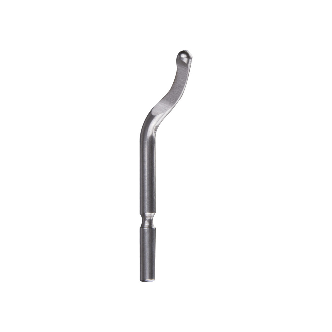 Klinge E 100, HSS-Klinge mit der Schneidkante von B 10, nur mit langem Schaft. Für innere und äußere Entgratarbeiten und langspanende Werkstoffe wie Stahl, Aluminium, Kunststoffe etc.