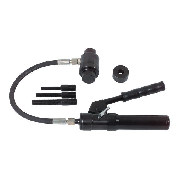 | Kurzbeschreibung | Handhydraulikstanze komplett + 1 Distanzbuchse + 1 Adapterschraube MF 10 x 1,0 Aufnahme 3/4" UNF + 1 Adapterschraube MF 12 x 1,5 Aufnahme 3/4" UNF + 1 Adapterschraube MF 16 x 1,5 Aufnahme 3/4" UNF Zugkraft 50 kN |