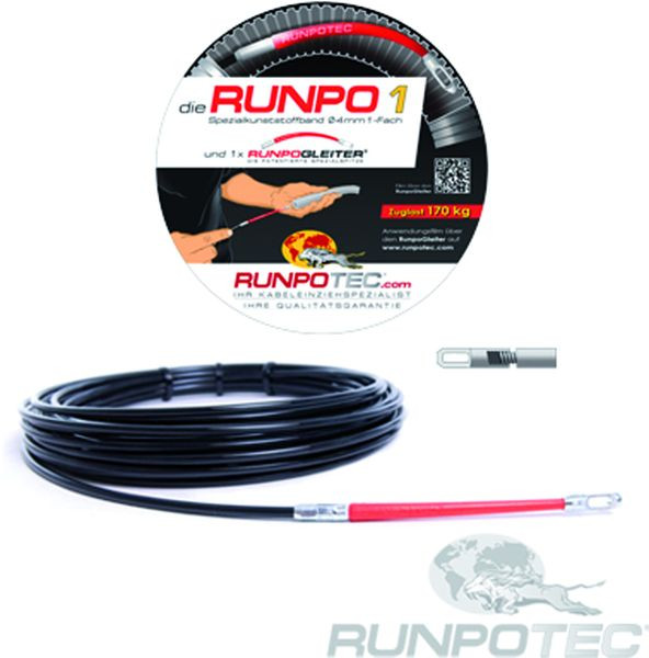 Die RP1 - Spezialkunststoffband Ø 4 mm mit dem RG6 Führungsspitze an der Spitze und einem abschraubbaren Ösenkopf am Ende, ist eine günstige Variante zur RP5. Bestens geeignet für kleine Rohrdimensionen und kürzere Strecken. Der RG6 Führungsspitze mit großem Ösenloch und die hohe Gesamtbruchlast von 170 kg machen die RP1 zu einem Einziehwerkzeug welches herkömmlichen Nylonbänder um vieles Voraus ist.