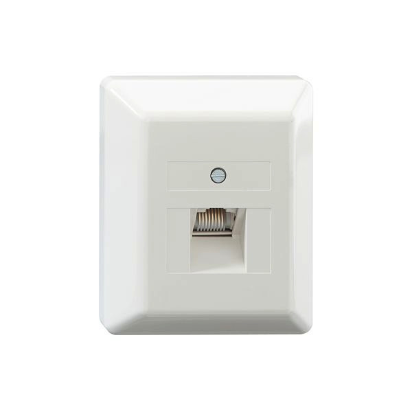 ClassEA iso U 1-fach-Anschlussdose, Aufputz, ungeschirmt, reinweiß (ähnlich RAL 9010); - für den Einsatz in 10-Gigabit-Ethernet-Netzwerken (Übertragungsbandbreite 500 MHz); - schnelle installation durch LSA-Kontakte; - RJ45-Stecköffnungen schräg nach unten geneigt; - Farbcode T568A und T568B gemäß TIA / EIA-568-B.2; - geeignet für Cat.6 und Cat.7 Kabel (Ø 6-10 mm); - LSA-Klemmen für einen Leiter 0,4-0,63 mm Ø, AW 26-22, Wiederbelegbarkeit > 50-mal; - geeignet für PoE++ / 4PPoE gemäß IEEE 802.3bt; - UPOE-konform; - HDBaseT-konform; - entsprechend nachfolgender Normanforderungen:; - ISO/IEC 11 801, ClassEA, ungeschirmt; - DIN EN 50173-1, ClassEA, ungeschirmt; - ANSI TIA/EIA-568-C.2, ClassEA; - Lebenszyklen > 750 Steckzyklen; - RJ11/12 fehlstecksicher