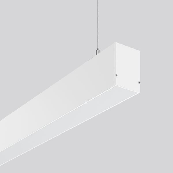 Lineare Pendelleuchte für ästhetisch anspruchsvolle Beleuchtung. Gehäuse Aluminium-Strangpressprofil pulverbeschichtet. Endkappen Aluminium pulverbeschichtet. Baldachin Aluminium pulverbeschichtet. Diffusor aus vergilbungsfreiem Kunststoff (PMMA) opal. Lichtaustritt direkt 65%, indirekt 35%. Geeignet für Pendel. 2-Punkt Stahlseilabhängung frei positionierbar und stufenlos höhenverstellbar oder gewünschte Sonderlängen auf Anfrage. Austauschbare und herausnehmbare LED-Einheit mit integriertem Betriebsgerät. Für Durchgangsverdrahtung geeignet. Auf Anfrage mit Sensorik oder als Sicherheitsleuchte.