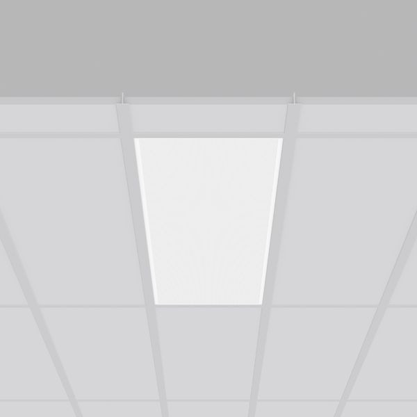 Einlegeleuchte für Deckensysteme mit sichtbaren Tragschienen. Gehäuse Stahlblech pulverbeschichtet. Leuchtenrahmen Aluminium pulverbeschichtet. Diffusor Kunststoff (PS) mikroprismatisch. LED Backlight-Technologie für eine homogene Ausleuchtung der gesamten lichtabgebenden Fläche. Geeignet für Deckeneinlege. MultiLumen: Einstellbarkeit des Leuchtenlichtstroms in 2 Stufen. Werkseitig auf niedrigsten Leuchtenlichtstrom voreingestellt. MultiColour: Farbtemperatur mit Schaltelement einstellbar auf 3000 K (Werkseinstellung) und 4000 K. Betriebsgerät extern. Hervorragend geeignet für Bürobereiche (RUG = 19) und Bildschirmarbeitsplätze (BAP) gem. DIN EN 12464-1.