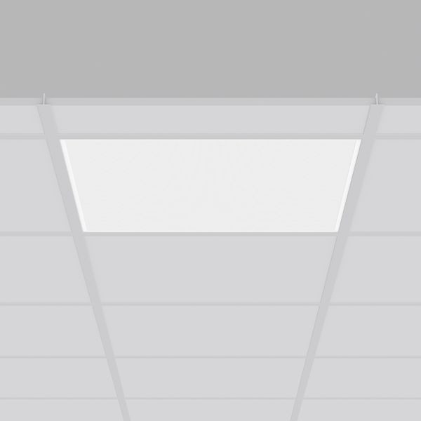 Einlegeleuchte für Deckensysteme mit sichtbaren Tragschienen. Gehäuse Stahlblech pulverbeschichtet. Leuchtenrahmen Aluminium pulverbeschichtet. Diffusor aus vergilbungsfreiem Kunststoff (PMMA) mikroprismatisch. LED Backlight-Technologie für eine homogene Ausleuchtung der gesamten lichtabgebenden Fläche. Betriebsgerät extern. MultiLumen: Einstellbarkeit des Leuchtenlichtstroms in 4 Stufen. Werkseitig auf Stufe 2 voreingestellt. Hervorragend geeignet für Bürobereiche (RUG = 19) und Bildschirmarbeitsplätze (BAP) gem. DIN EN 12464-1.