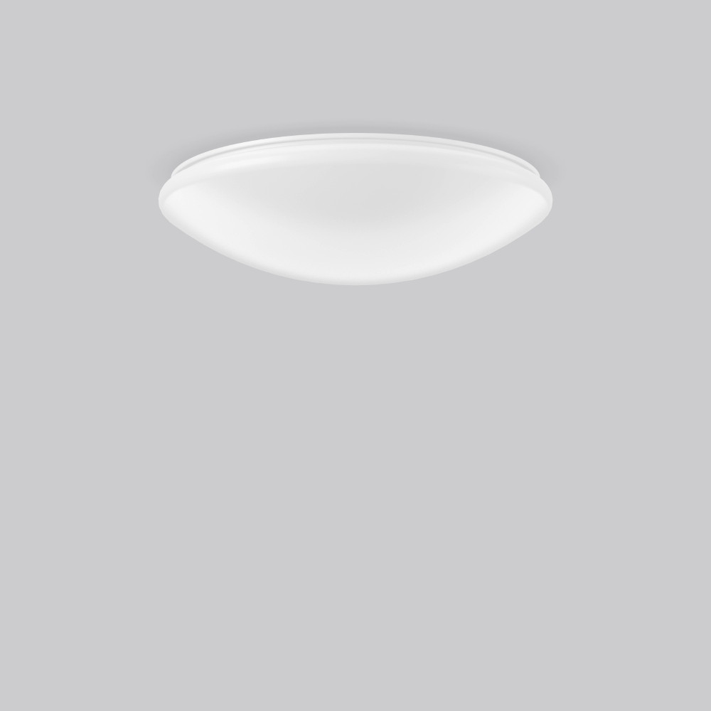 Runde Anbauleuchte mit sphärischem Diffusor für den Innenbereich. Armatur Metall pulverbeschichtet. Diffusor aus Kunststoff (Polycarbonat) opal, schlagzäh. Befestigung des Diffusors mit patentierter Verschlusstechnik (Druckverschluss). Homogene Ausleuchtung des Diffusors. Indirekter Lichtanteil zur dezenten Deckenaufhellung. Geeignet für Deckenanbau, Pendel für schräge Decke, Wandanbau. MultiColour: Farbtemperatur 3000 K oder 4000 K individuell einstellbar. Werkseitig 3000 K eingestellt. MultiLumen-Betriebsgerät integriert. Einstellbarkeit des Leuchtenlichtstroms in mehreren Stufen. Werkseitig höchster Leuchtenlichtstrom eingestellt. Für Durchgangsverdrahtung geeignet. Mit Zubehör auch als Pendelleuchte möglich. Umweltfreundlich und ressourcenschonend durch austauschbare und recycelbare Komponenten.