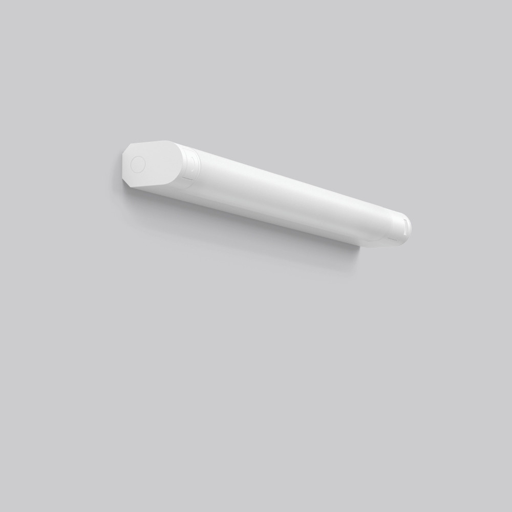 Linienleuchte als Wand, und Spiegelleuchte einsetzbar. Armatur Aluminium pulverbeschichtet. Endkappen Kunststoff (Polycarbonat), schlagzäh. Diffusor Kunststoff (Polycarbonat) opal. Geeignet für Deckenanbau, Wandanbau. Waagerechte und senkrechte Montage möglich. Einfachste Installation durch Plug-and-Play-Stecksystem. Mit Druckschalter und Schuko-Steckdose. Betriebsgerät integriert. Hohe Schutzart IP44 für den Einsatz im Nassbereich.