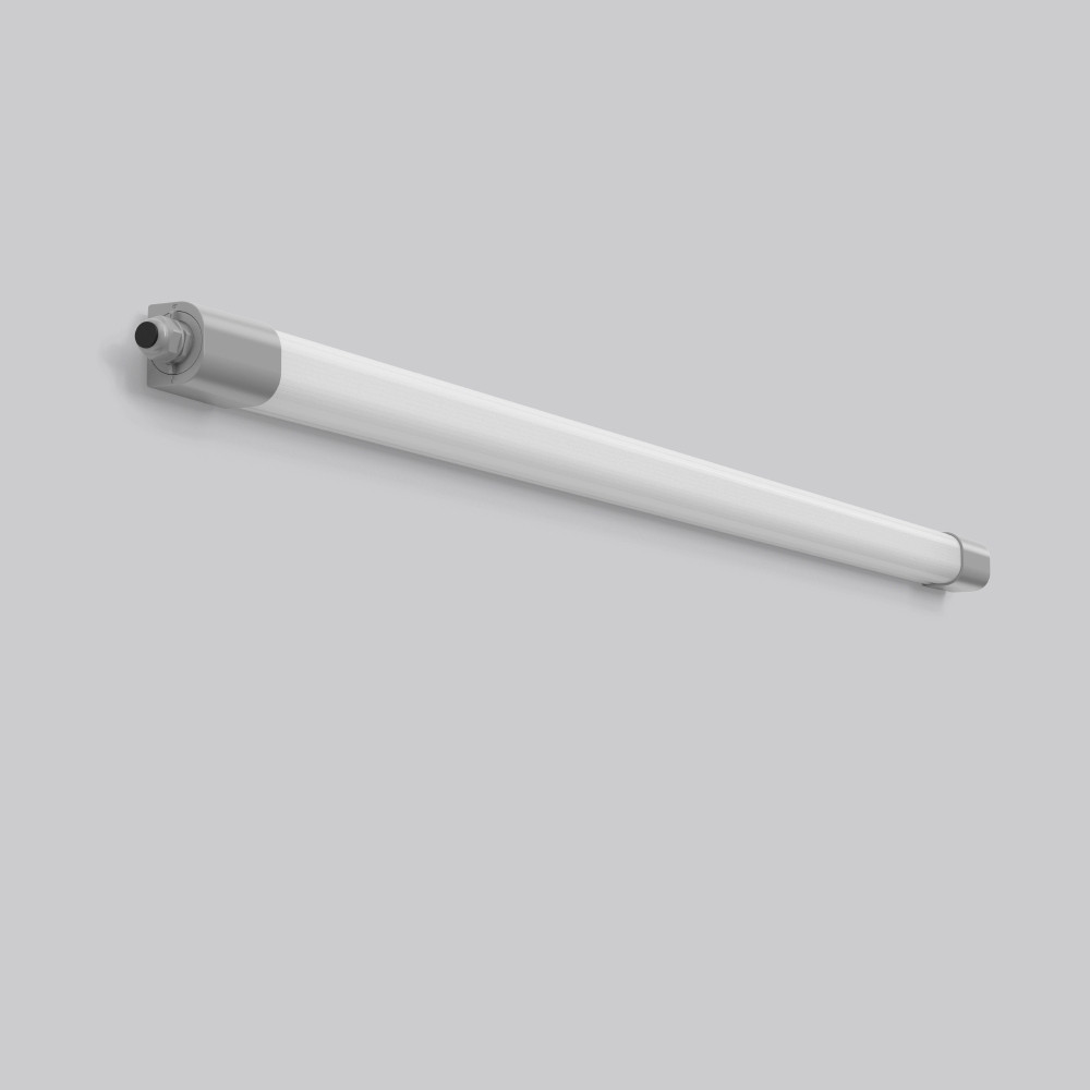 Ammoniakbeständige Feuchtraumleuchte. Seitenteile Kunststoff (PMMA) grau. Diffusor aus vergilbungsfreiem Kunststoff (PMMA) opal. Lichtverteilung symmetrisch. Homogene Ausleuchtung. Rückwärtiger Lichtanteil zur Deckenaufhellung. Flexible Installation durch verschiebbare Montagebügel. Ideal bei Leuchtenaustausch. Deckenmontagebügel aus Edelstahl und Triangel-Bügel für Pendelmontage im Lieferumfang enthalten. Leuchte mit integrierter 4-poliger Durchgangsverdrahtung für das Aneinanderreihen von weiteren Leuchten. Komfortable Leitungseinführung über Kabelverschraubungen. Einfache Installation durch herausnehmbare Steckverbindung und Drehverschluss auf beiden Seiten. Austauschbare und herausnehmbare LED-Einheit mit integriertem Betriebsgerät. MultiLumen: Einstellbarkeit des Leuchtenlichtstroms in 2 Stufen. Werkseitig auf höchsten Leuchtenlichtstrom voreingestellt. Leuchte mit begrenzter Oberflächentemperatur nach DIN EN 60598-2-24 zur Verwendung in einer Umgebung, in der eine Ablagerung von leitfähigem Staub auf der Leuchte erwartet werden kann. Ammoniakbeständig: Zur Verwendung in Ställen mit Nutztierhaltung und landwirtschaftlichen Nebenbereichen geeignet.